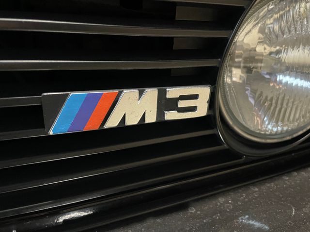 Bei der Auslieferung erhielt der M3 bereits die 3-teiligen BBS-Felgen, ein anderes Fahrwerk sowie ein kleineres Sportlenkrad. All diese Dinge wurden damals gleich im Fahrzeugbrief eingetragen. Den ersten und originalen Brief gibt es noch. Um den breiteren BBS-Felgen Platz zu schaffen wurden die Radläufe hinten gebördelt. Folglich wurden beide Seitenteile nachlackiert. Abgesehen davon und von einem unverschuldeten Parkplatzrempler in der Türe zeigt sich der BMW im originalen Lack sowie unfallfreien Zustand.